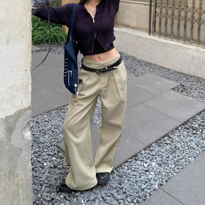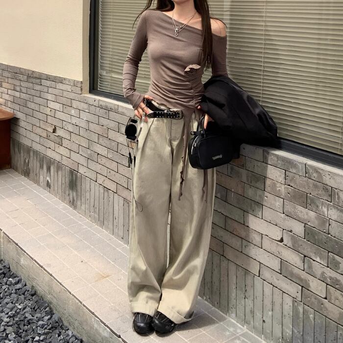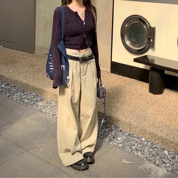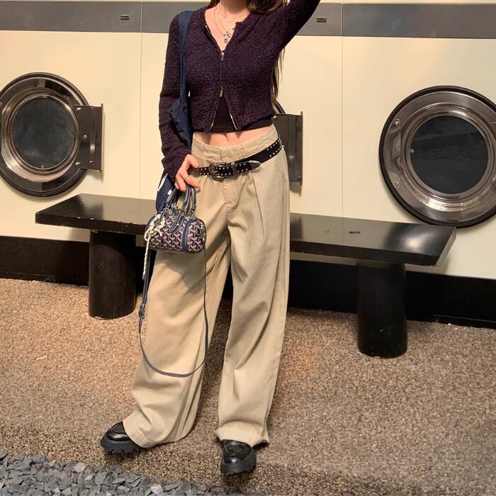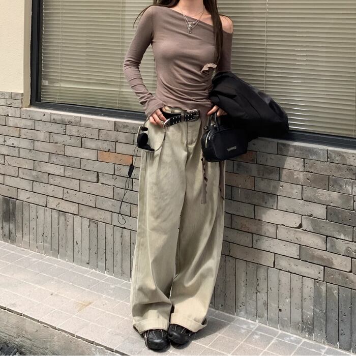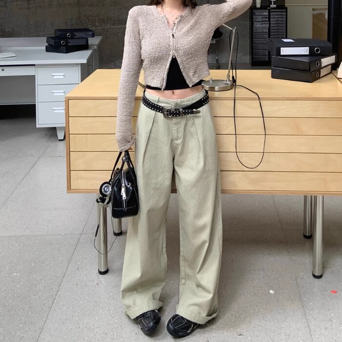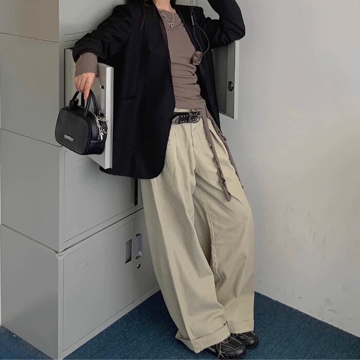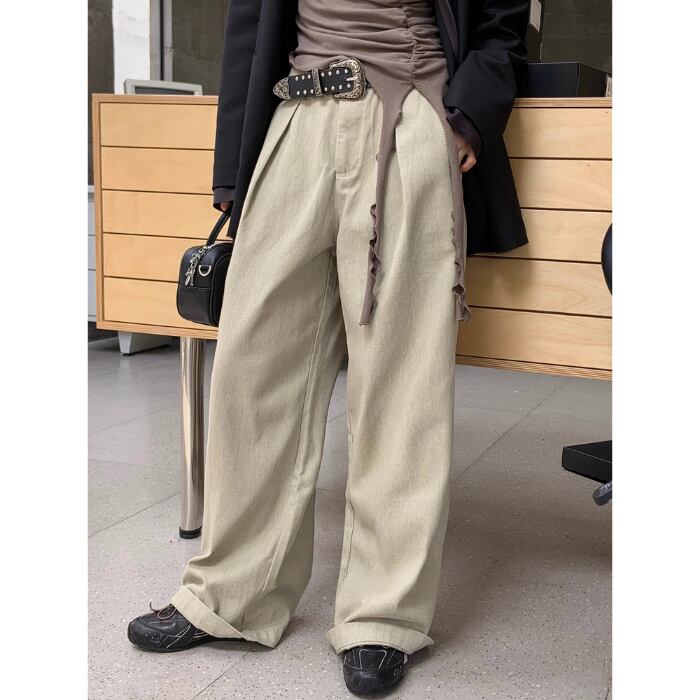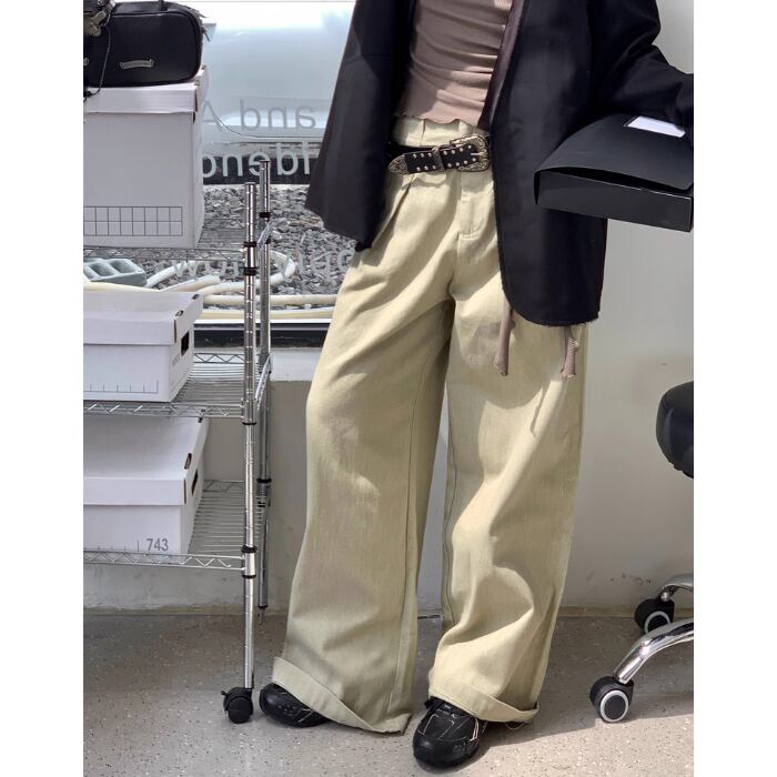 ワイドレッグハイウエストストレートパンツ【S-L】