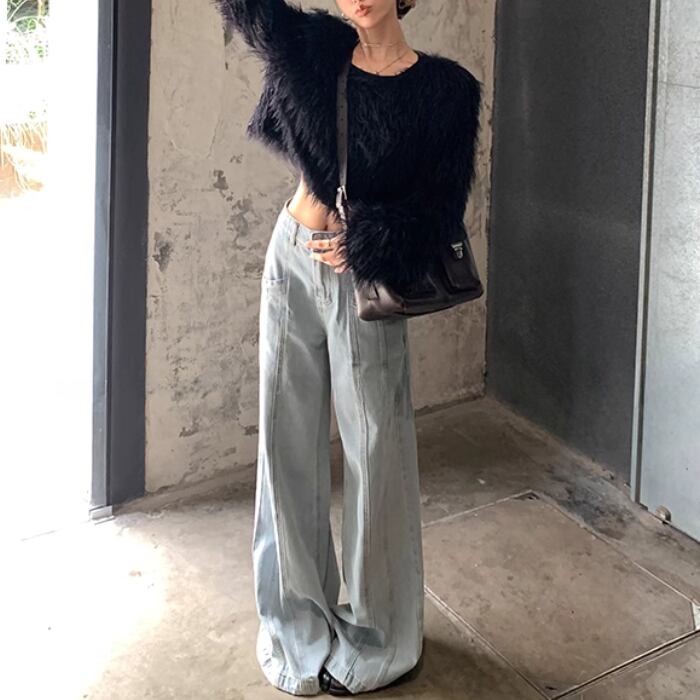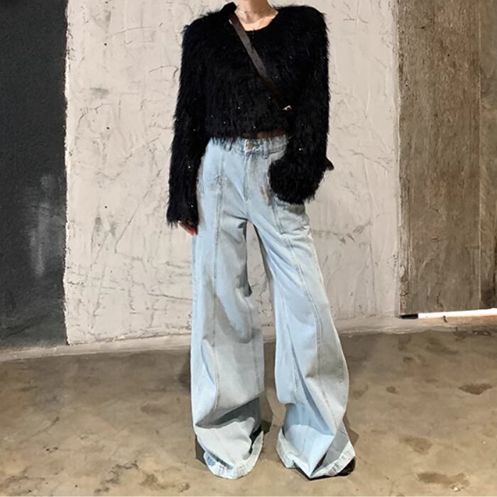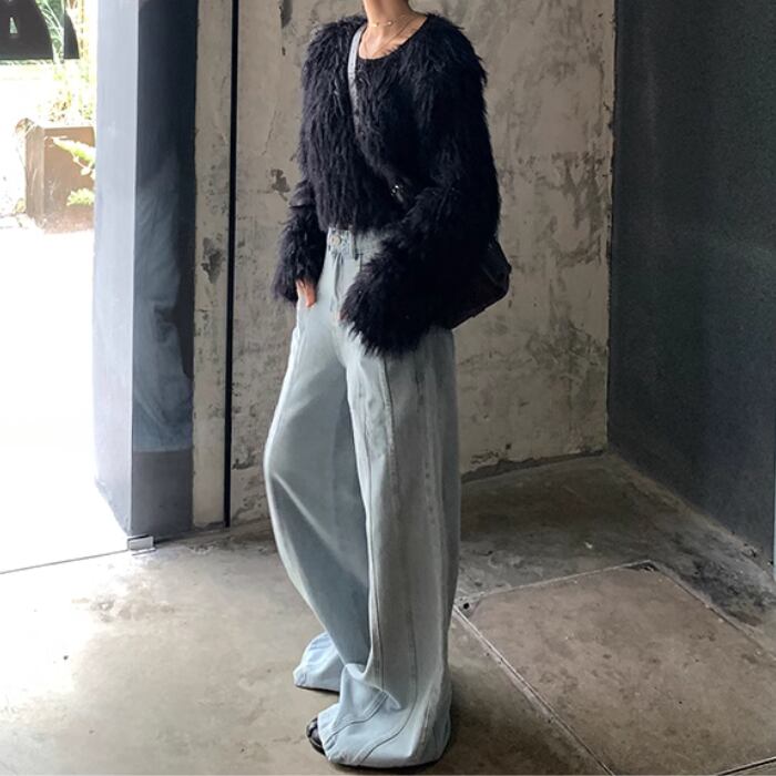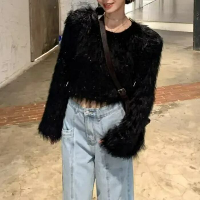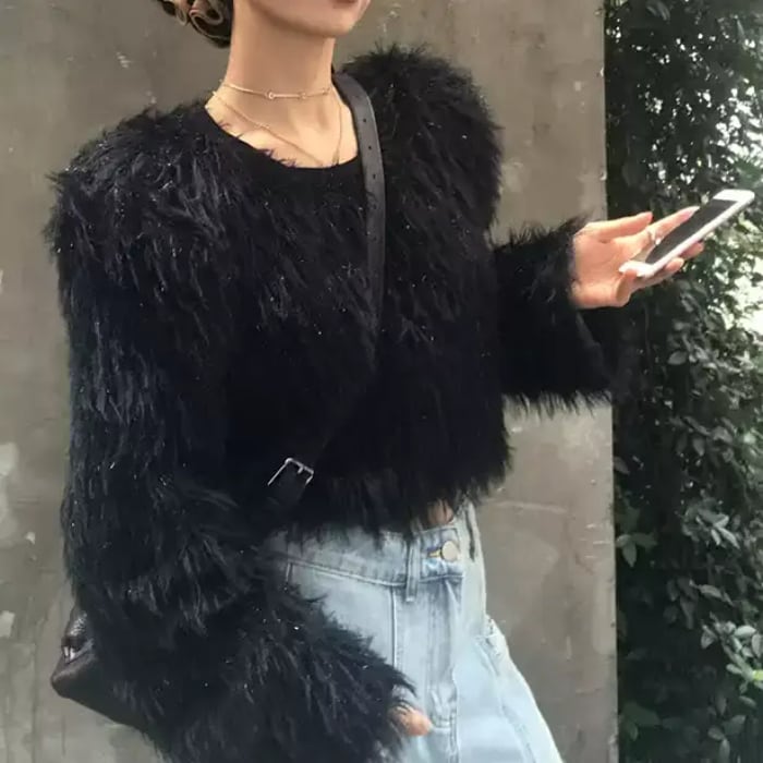 クロップドフェイクファートップスセーター【S-М】
