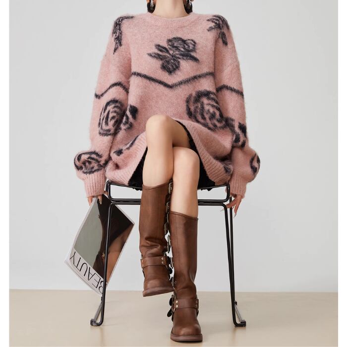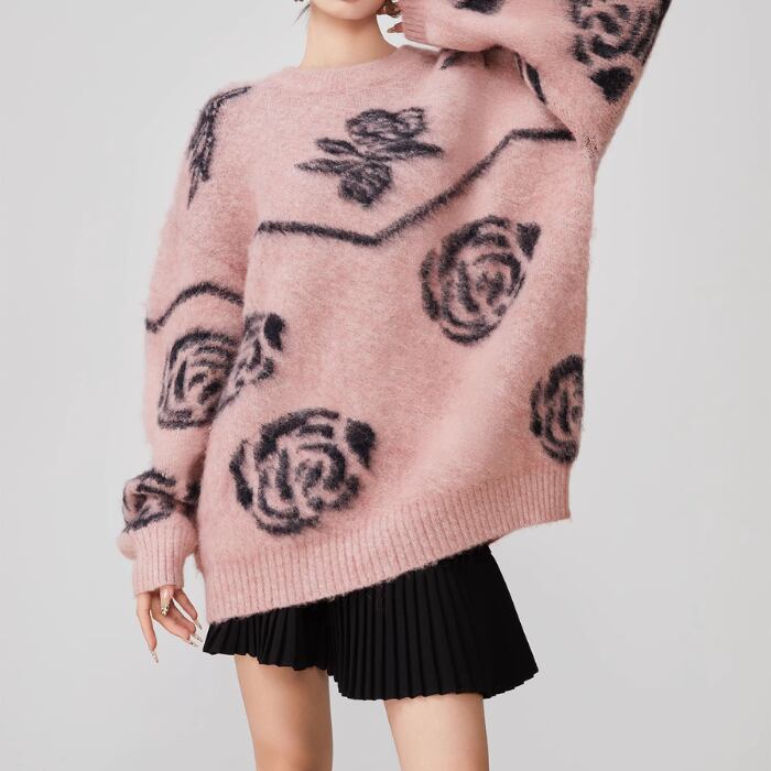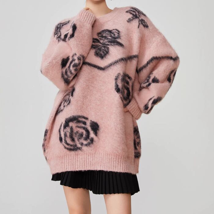 レトロフラワープルオーバーセーター【S-XL】