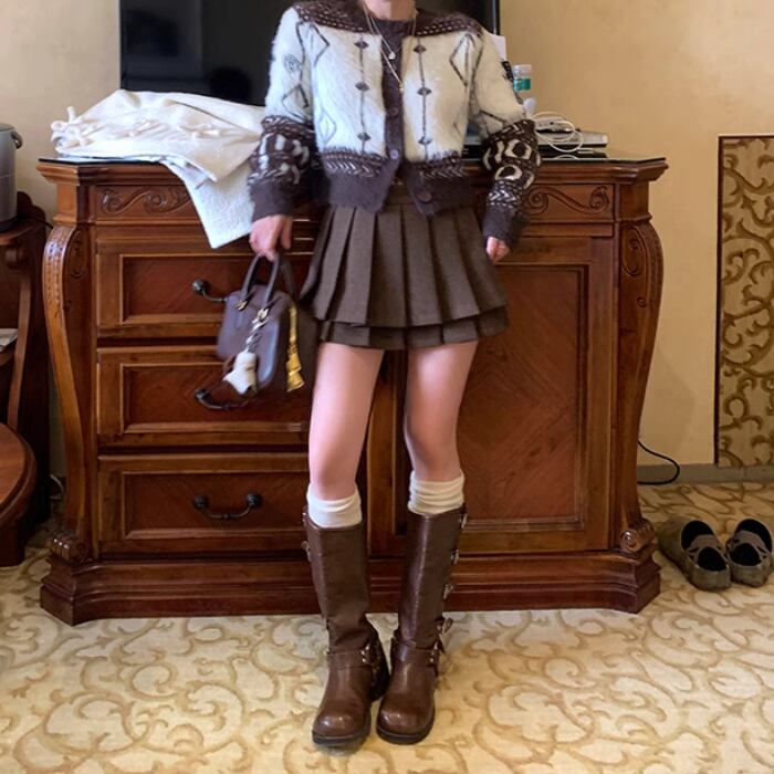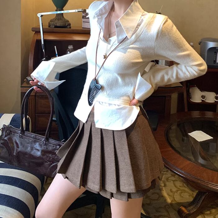 Aラインプリーツショートスカート【S-L】