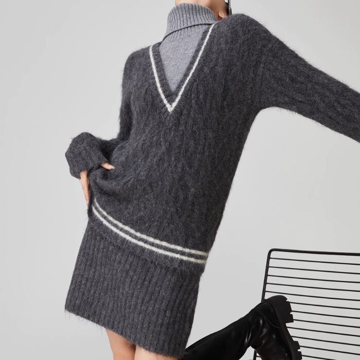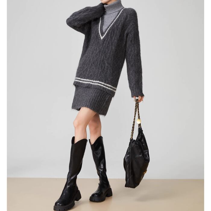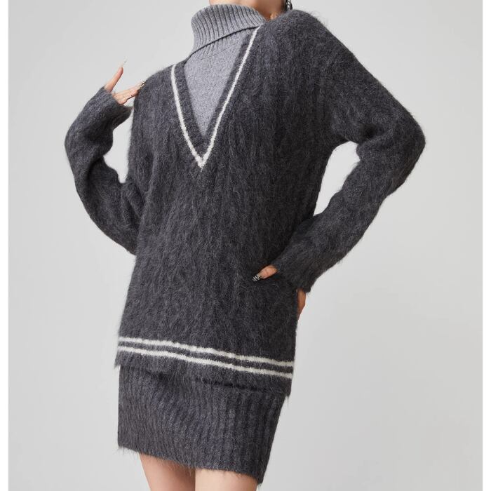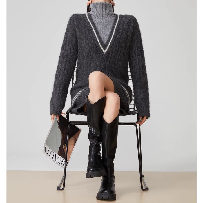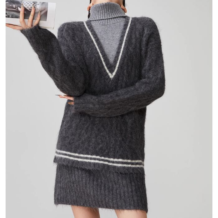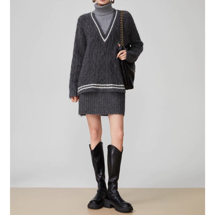 【2点セット】タートルネックニットセーター&ショートスカート【S-XL】