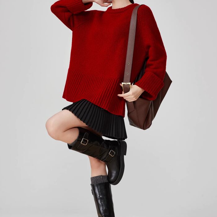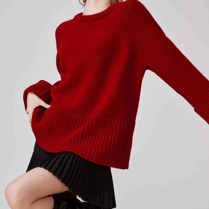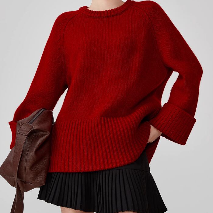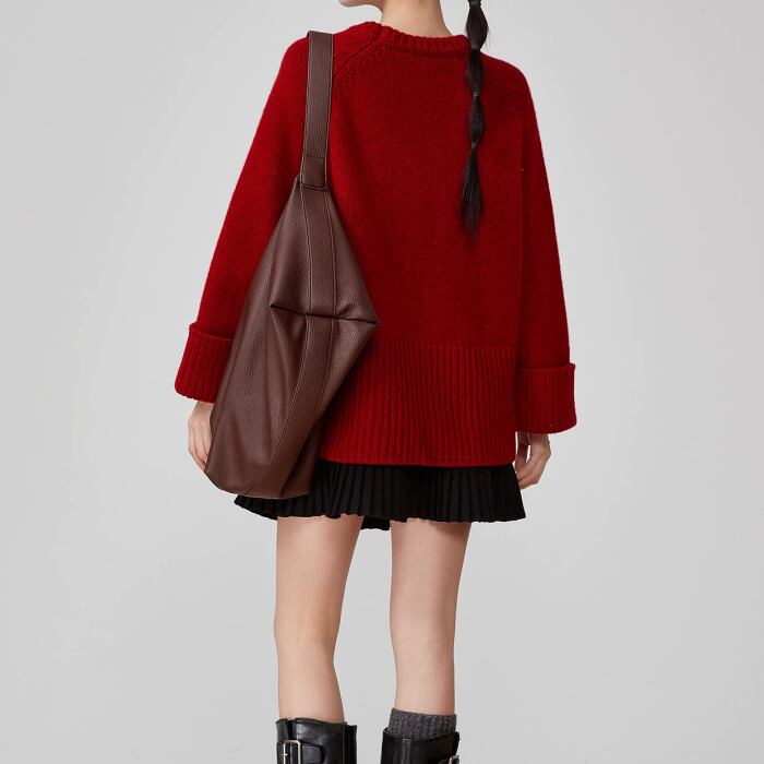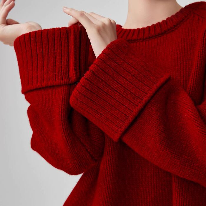 レッドラウンドネックニットセーター【S-XL】