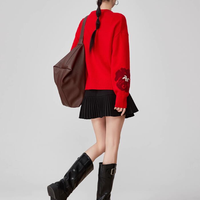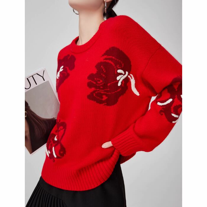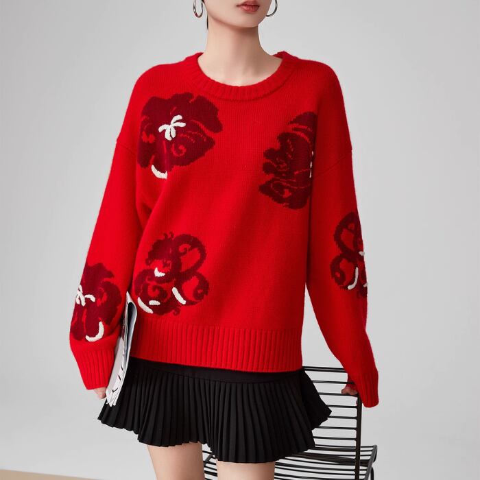 ラウンドネック翔雲ジャカードセーター【S-XL】